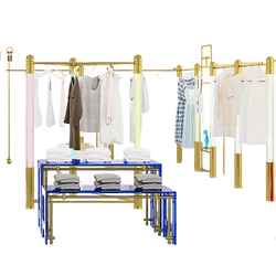 Estante de ropa de techo de metal de acero inoxidable de tamaño personalizado estante de ropa de Pipa de acrílico para tienda de boutique exhibición de ropa