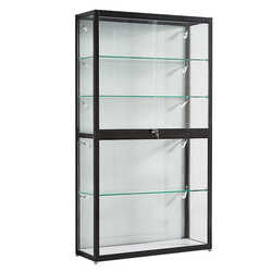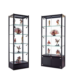 Vitrina de exhibición de tienda alta de vidrio de aluminio de visión completa Vitrina de exhibición de figuritas de juguete con estantes de vidrio ajustables y luz LED