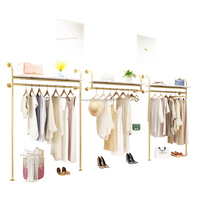 מתלה בגדים מדף צמוד קיר בוטיק מותאם אישית נירוסטה זהב מתלה תצוגת בגדים על הקיר