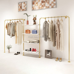 Commercial Women Shop Metal Garment Display Wall Mounted Clothes Stand Stainless Steel Boutique Gold Clothing Racks for Store