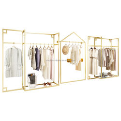 Custom Boutique Retail Store Clothes Rack Wall Mounted Lady Shop Design Stainless Steel Gold Clothing Dress Display Rack