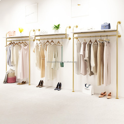 Negozio al dettaglio personalizzato Boutique appendiabiti a parete da donna Design in acciaio inossidabile oro espositore per abiti