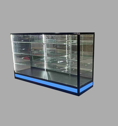 Vetrina con Display in vetro personalizzato con luce da corsa in alluminio con struttura da pavimento in piedi banconi espositori per negozi di fumo