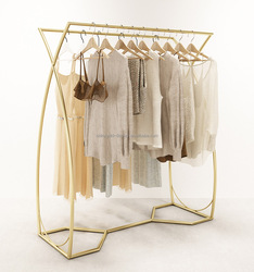Özel konfeksiyon Metal raf kadınlar mağaza elbise ekran standları için paslanmaz çelik altın kıyafet rafı butik giyim mağazası